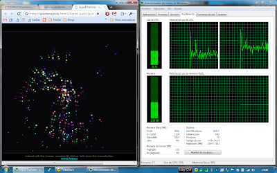 Al final la impresión para la mayoría es que el HTML5 es una forma de hacer juegos estúpidos para los navegadores. Nadie se enterará de la guerra que media en el fondo acerca de los códecs que reproducen el vídeo, de Adobe vs. Apple vs Google, que quieren conservar su pedazo del pastel, porque estaremos entretenidos con tonterías como el siguiente juego, que también tira procesador que da gusto: Liquid Particles