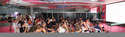 Ayer estuve con Ender, repite éste año como Coordinador del Área de Software Libre, viendo la disposición de las mesas en el área, el escenario y toda la infraestructura, e hice algunas fotillos: